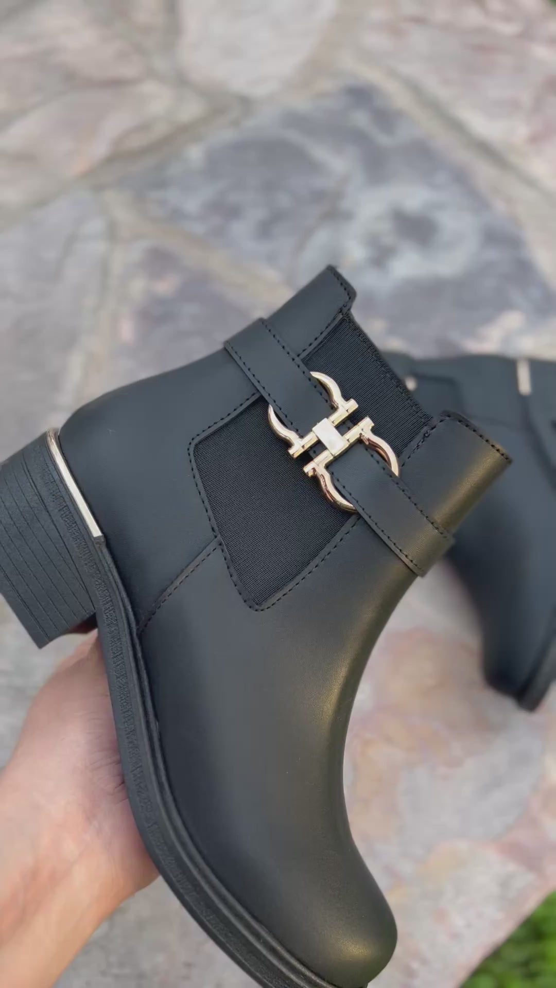 Botín de piso con detalle dorado, el modelo viene en números medios.